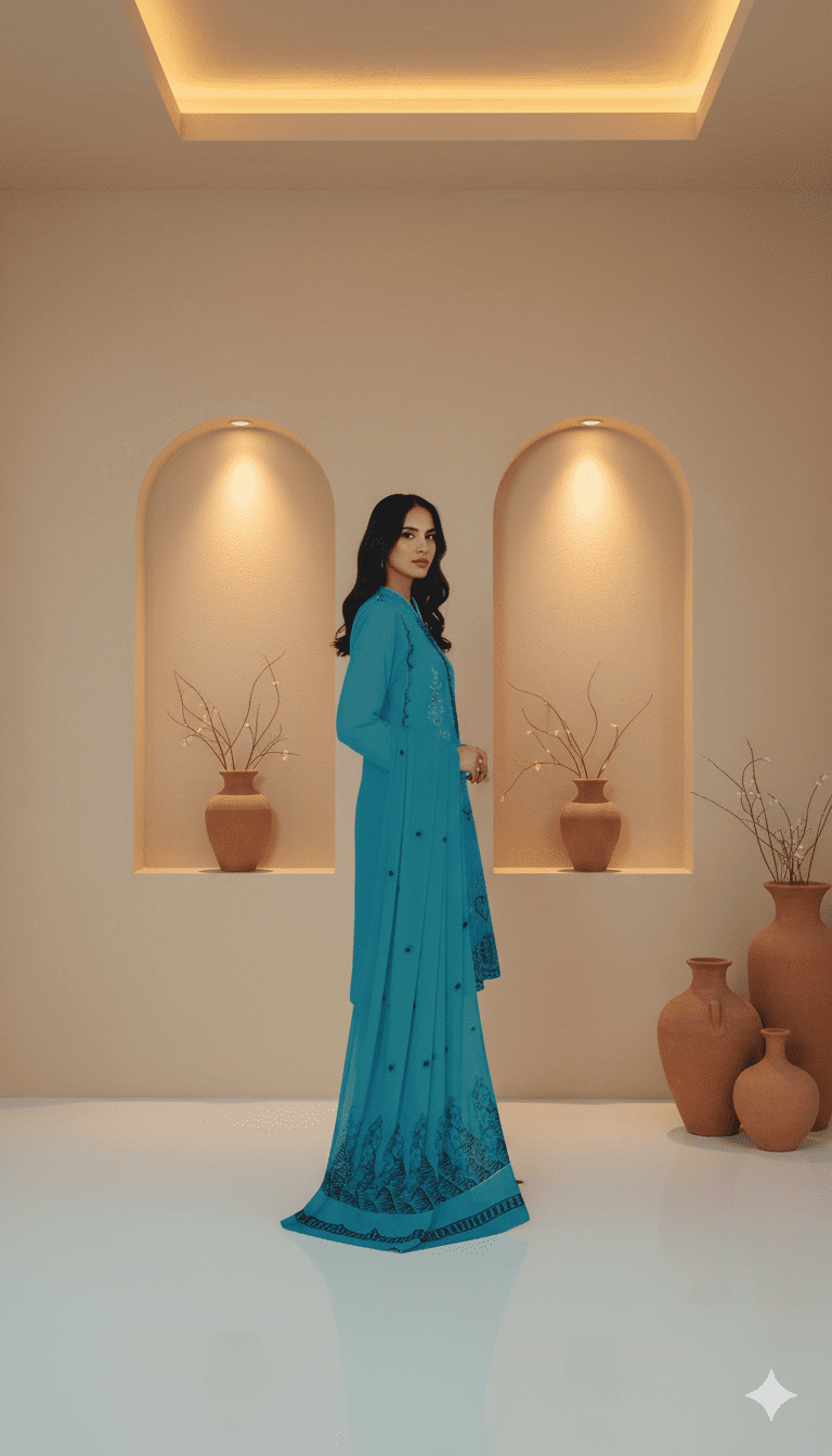 Indulge in earthy allure with Chmki Dhanak’s captivating 3-piece unstitched collection: the Embrioded Shirt, Vlvet Pulo Shawl, and Chmki Trouser in warm Terracotta. This masterpiece showcases opulent embroidery inspired by nature’s motifs, meticulously handcrafted on sumptuous, durable fabrics that promise unparalleled comfort and flow. The velvet shawl drapes with velvety richness, enhancing your silhouette for cooler evenings or festive vibes. Tailored for weddings, cultural celebrations, and elegant soirees, it invites creative tailoring to embody your personal narrative. In the grounding Terracotta shade, unlock a fusion of heritage and contemporary chic—where every detail whispers timeless sophistication and seasonal versatility.